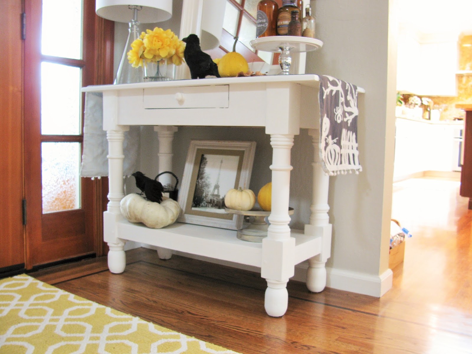 I’ve wanted to find a beautiful table for our entryway, and I’ve been looking in stores for a while now. Finally, I found a table on Craigslist and quickly went to buy it and pick it up in our neighborhood. Well, the price was right, and the size was perfect for the space. I placed it near the door and let it sit there for a while until I was sure what color I wanted to paint it. Also, it wasn’t an easy project since I first had to paint the walls a lighter color, they went from brown to a light grey. So, after a couple of months, the area was ready for a new table, and it’s fresh new look. I painted the table Annie Sloan’s, Pure White. For those of you who aren’t familiar with chalk paint, it adheres to lots of surfaces and requires very little prep. For this project, I only cleaned the table with a damp cloth and didn’t sand it at all.