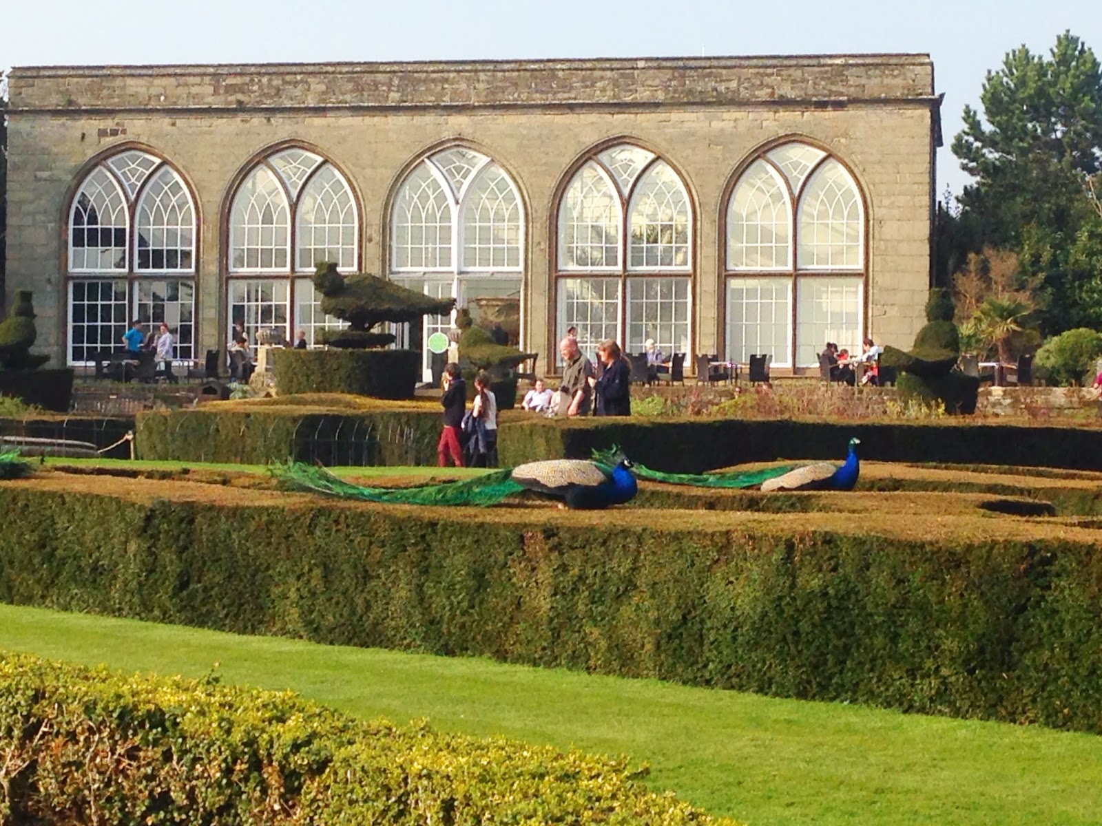 They had a conservatory that served tea and pastries. As you can see, it was so beautiful and serene. Peacocks roamed the gardens You can spy a teal and blue one on the hedge!