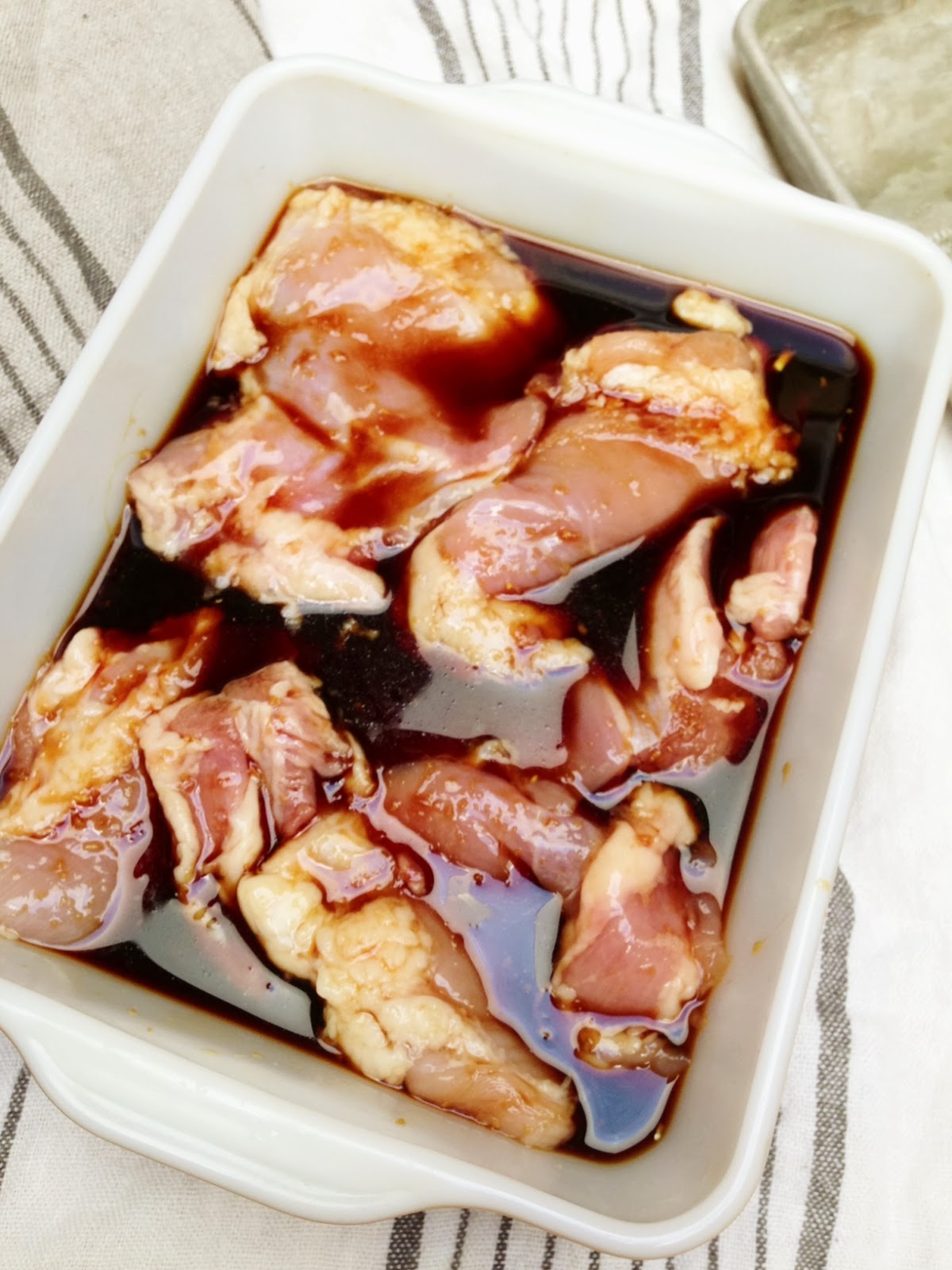 mix all the ingredients together…sugar, soy, mirin, ginger and chicken. you can marinate and refrigerate the chicken for a couple of hours in the sauce or you can cook it right away. since, it bakes in the sauce it pretty much soaks in the marinade. bake at 350 for about 15-20 minutes. you kind of want the chicken a little on the raw side if you plan on grilling it on the bbq. if you don’t want to grill it, then continue baking for another 5 minutes. grill on heat high to medium and you are basically searing the chicken to get the smoky taste and grill marks. you don’t want to grill it too long since it will dry out the chicken. to make a thick teriyaki sauce, take the remaining sauce and place it in a sauce pot and cook on the stove top until it boils and gets thick. be careful not to burn the sauce. enjoy with a side of japanese sticky rice!