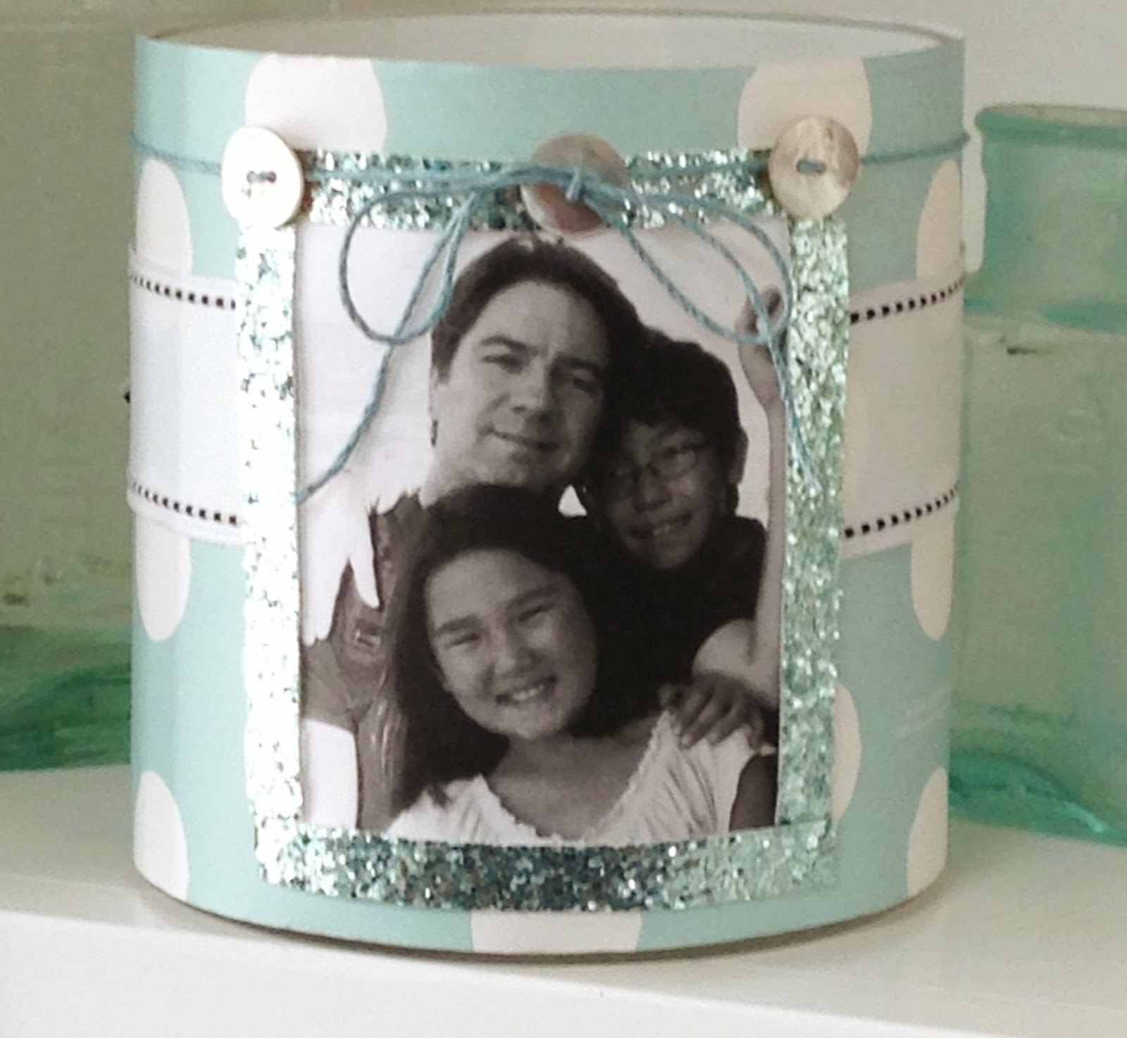 next pick a photo you’ll want to display on the candle holder. mine is just a copy i made on our home printer. since it is printed on regular paper it has a see through quality which is cool when you light the candle at night. if you want that vellum look, i’ve been told by my friend Nancy, that there is vellum ink jet paper available at Staples.