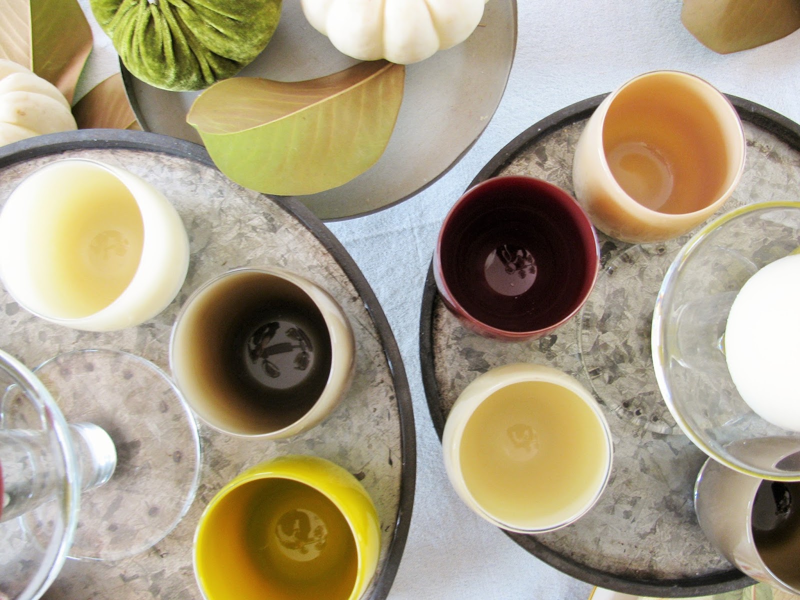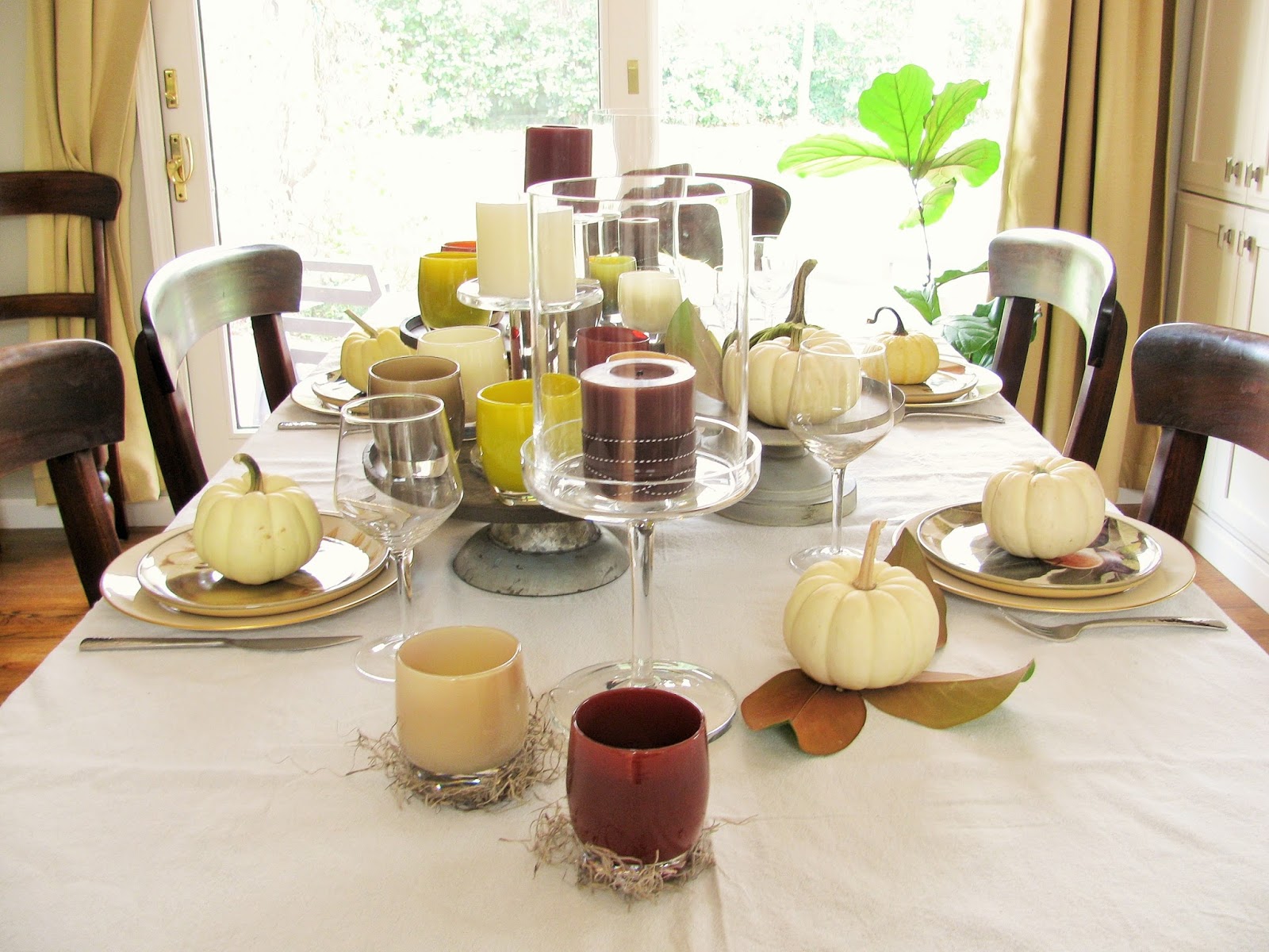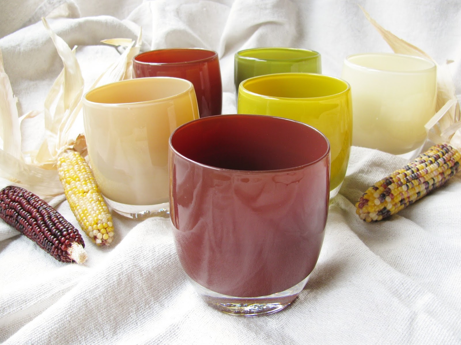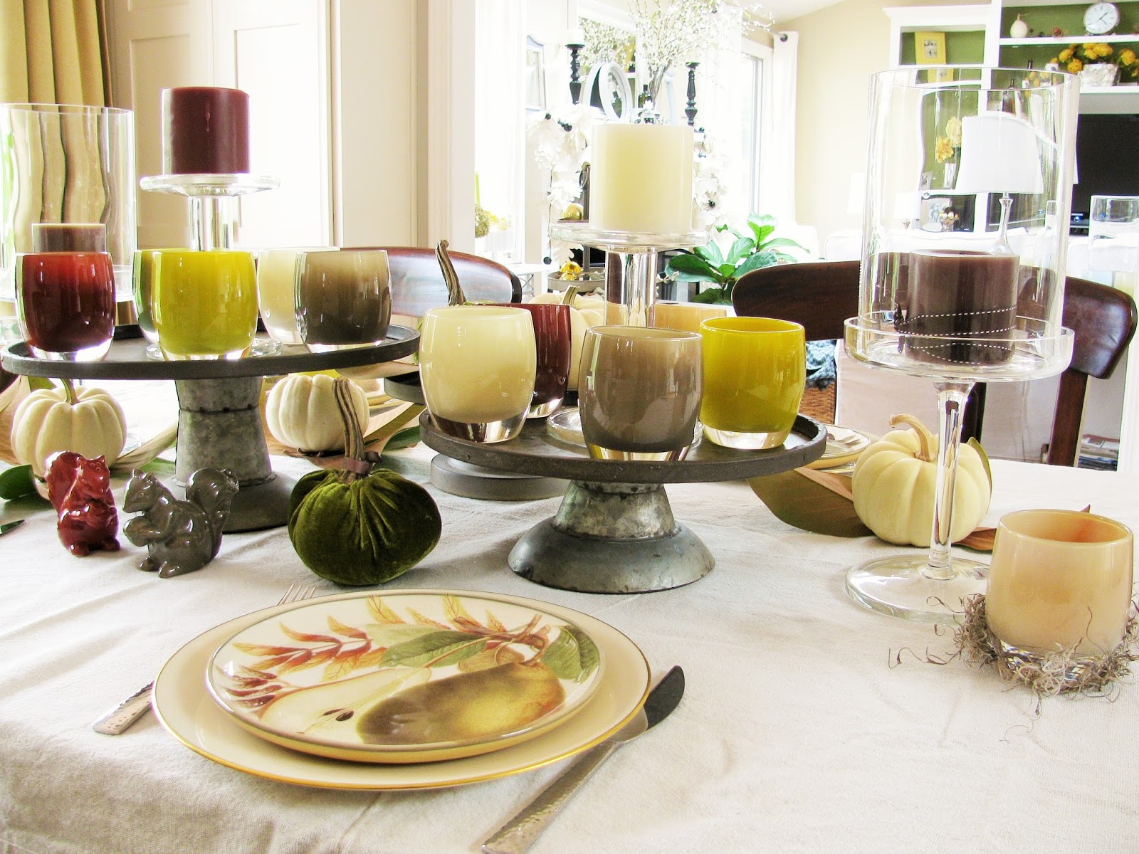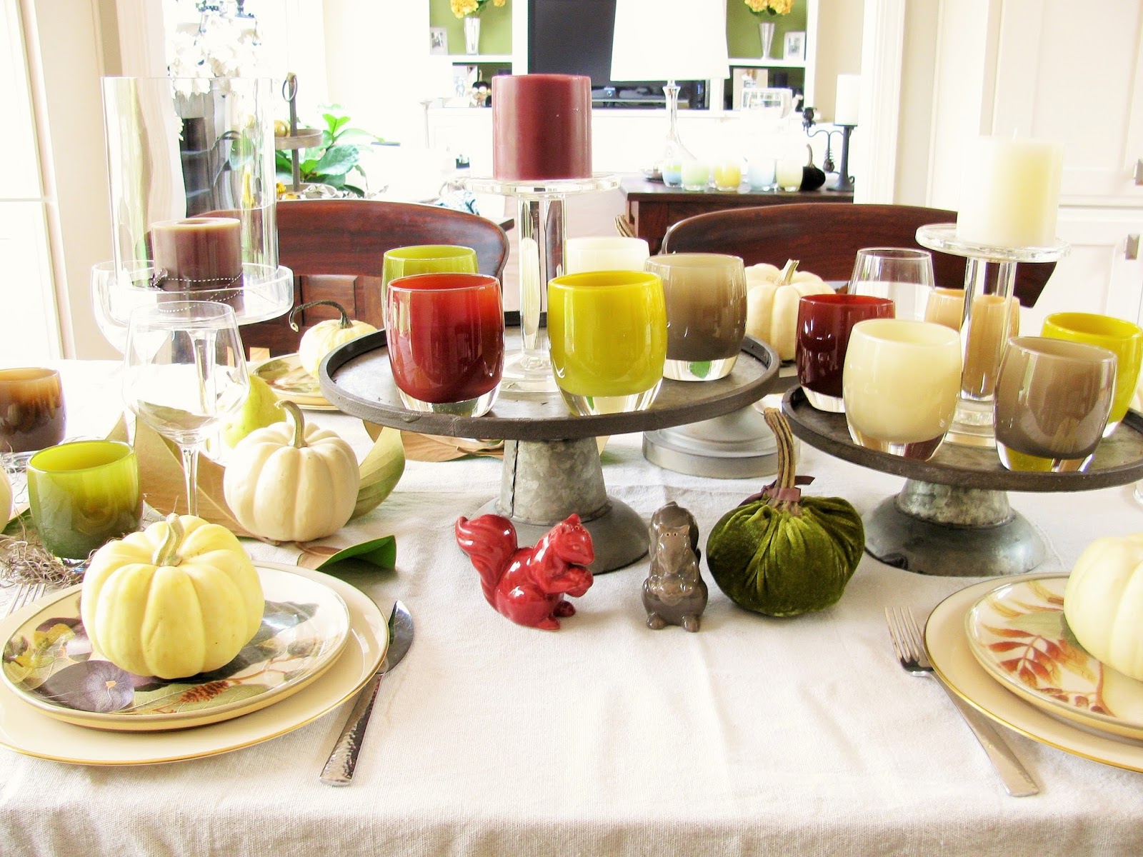 I absolutely love the fall colors you picked for your table. I am also so grateful that you introduced me to Glassybaby. Such a beautiful product.