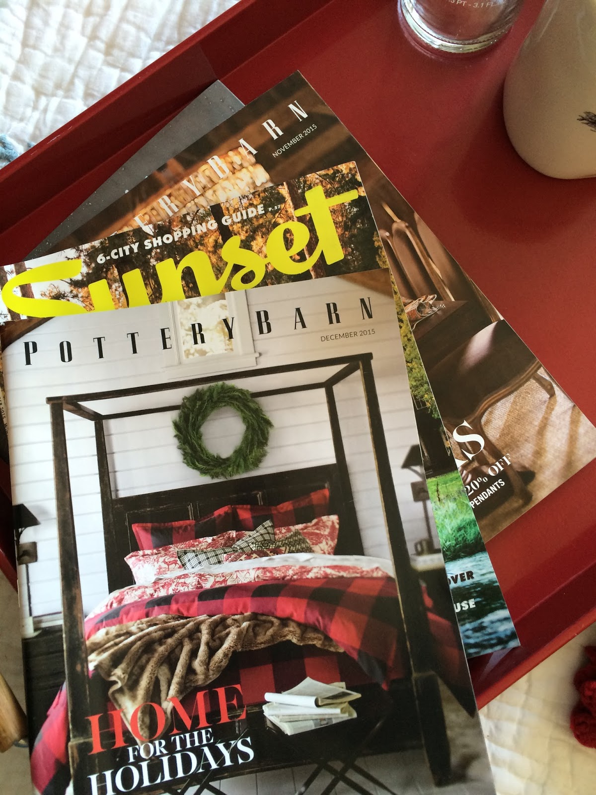 I leave a tray on the bed or nightstand so they can keep their watch, phone, or pocket items somewhere organized. ย I really love this one from Pottery Barn. I might pick it up before my guests arrive.