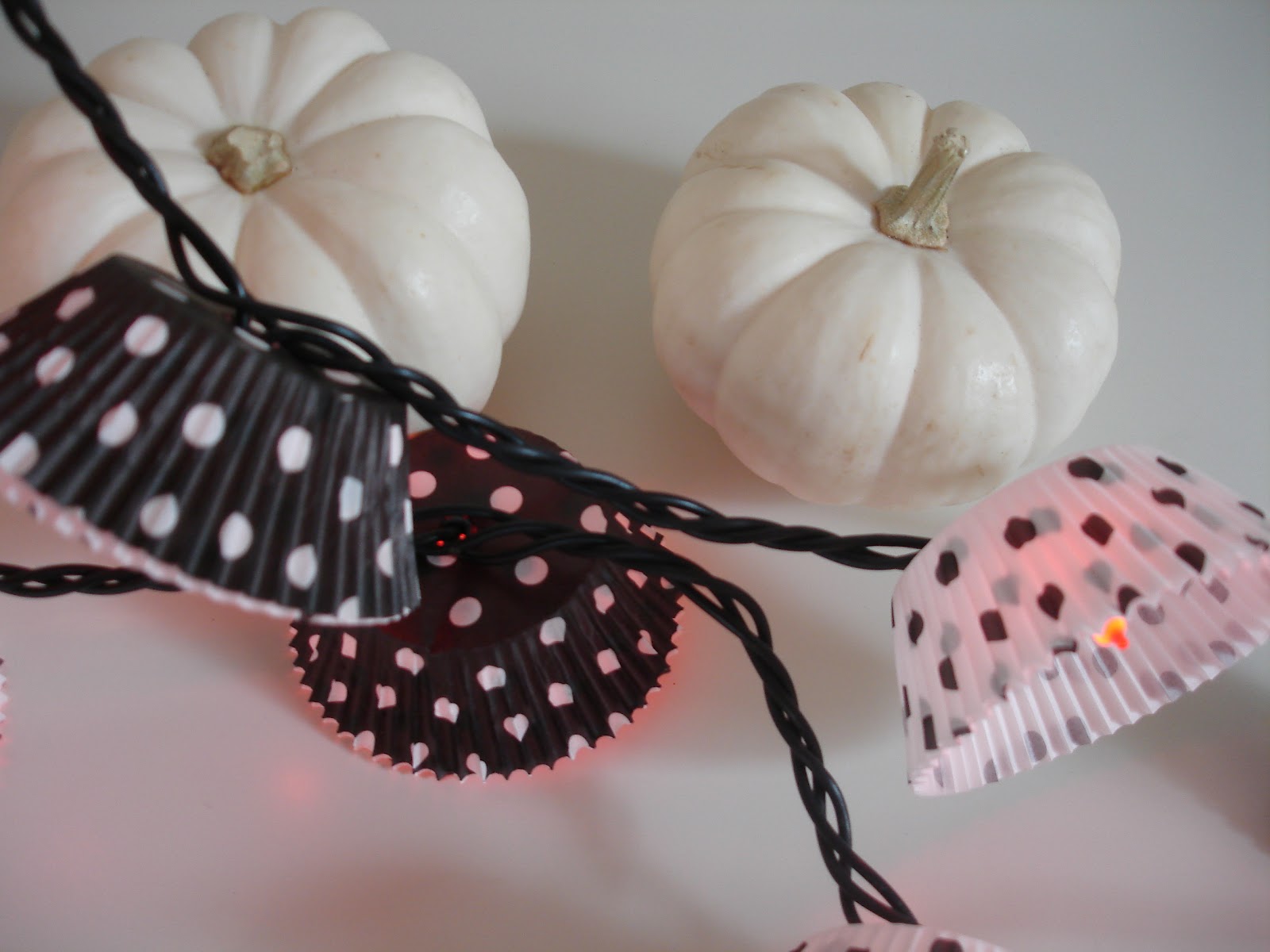 this is a very easy project. the craft stores have so many fun paper cupcake liners that it is kind of difficult choosing just one design. i found some black and white polka dotted liners that i used for this project. i decided to double line my lanterns to make it fun and also add some support to the shades. so here are the materials you’ll need…