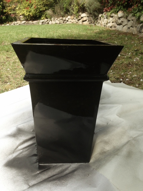 my black tin pots have seen better days. they were all rusted and oxidized and looked pretty sad on my porch. our gardener told me about this spray that he uses to freshen up wrought iron fences. so, i decided to try it on my now gray pots. well, the results came out great and i was so inspired that added a topiary to them. now i’m thinking i can get a few more years out of them! i still have a few more things i would like to add to my front porch but…one thing at a time. thanks for stopping by and please follow me on bloglovin.